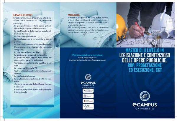Master in Legislazione e contenzioso delle opere pubbliche. RUP, progettazione ed esecuzione, CCT – Terza Edizione